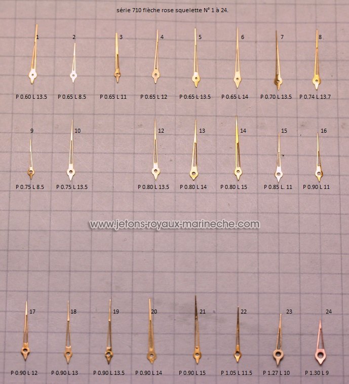 Vous êtes ici : Accueil Horlogerie Aiguilles Aiguilles flèche, rose, squelette,une aiguille 15€ €.série 710.N°1 à 24.