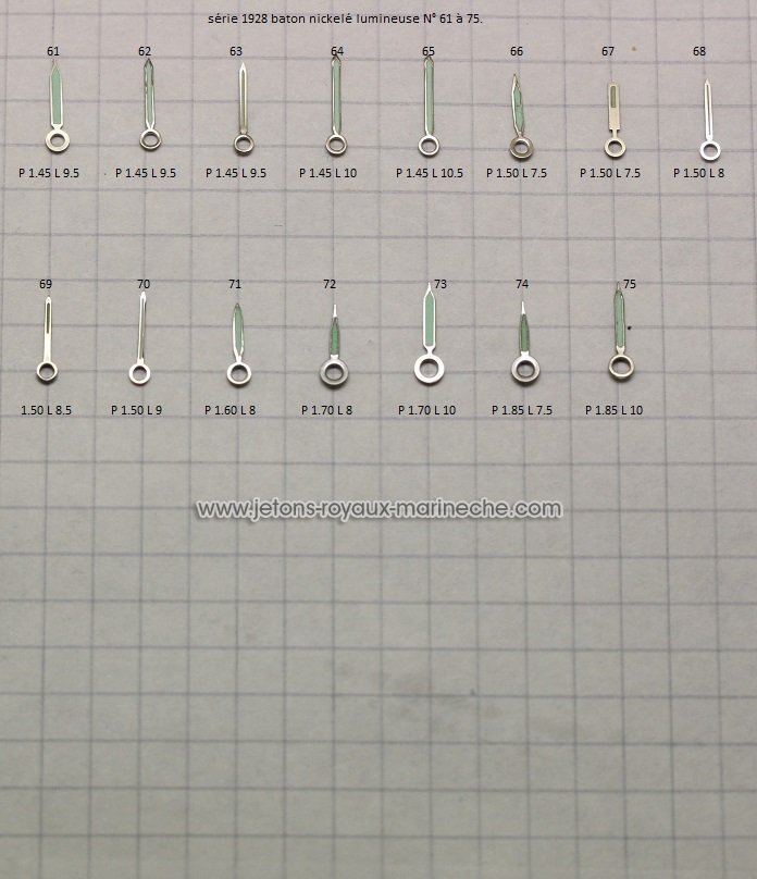 Aiguilles bâton nickelé lumineuse, une aiguille 15 €. série 1928 N°1 à 75.
