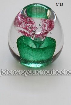 les dimentions sont en centimètre. N° 3 vert/rose diam 7 ht 8.20 53 gr. N°4 vert/blanc/bulles diam 7.30 ht 8.40 56 gr. N° 7 vert /4 longues bulles diam 7.50 ht 8.70 63 gr. N° 9 bleu/anneau blanc diam7.40 ht 8.60 58 gr. N° 10 rose/spiral/blanc diam 7.40 ht 8.10 59gr. N° 17 diam 7.20 ht 8.50 blanc/rose 58 gr. N°18 vert/rose diam 7.50 ht 8.60 63 gr. N°19 vert/spiral blanc diam 7.50 ht 8.20 59 gr. N°20 blanc/rose diam 7.50 ht 8.30 64 gr. N°25 jaune/rose diam 7.30 ht 8.20 59 gr.