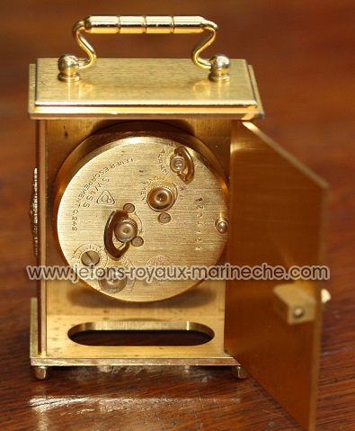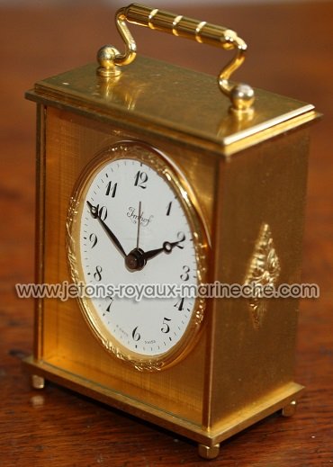 Vous êtes ici : Accueil Horlogerie Pièces Réveils, Pendules Imhof Réveil 8 jours alarme , couleur doré neuf. N°48 831. ht 9cm 6x3.50cm.