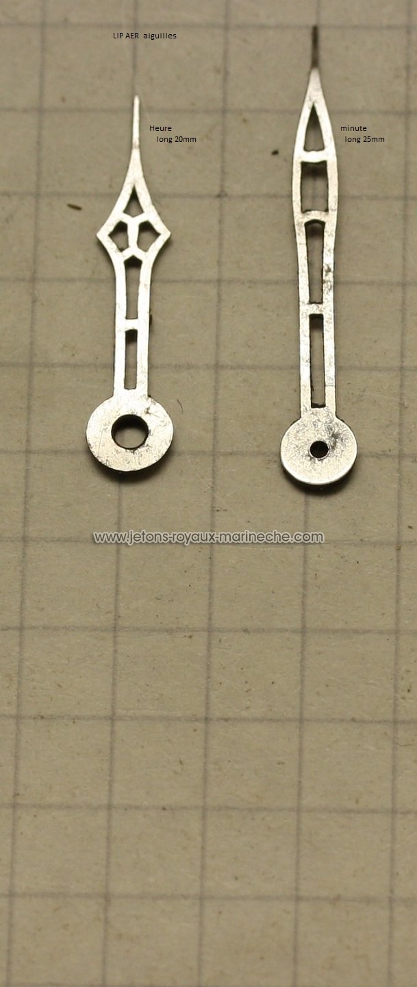 LIP-AER 14-15, 100 platine empierrée=100€; 105 pont de barillet nu=100€; 110 pont de rouage empierré=90€; 116 pont d'échappement=50€; 122/1 pont de balancier complet pour spiral breguet avec raquette coqueret vis de piton=115€; 180 barillet avec couvercle=40€; 180/22 barillet avec ressort=70€; 196 arbre de barillet seul=60€; 196/1 ressort boudin=30€; 5196 vis d'arbre de barillet=25€; 201 roue de centre=70€; 210 roue de moyenne=60€; 221 roue de seconde, long pivot dessus=120€; 240 chaussée=70€; 255 roue des heures=35€; 260 roue de minuterie=30€; 301 raquette=40; 311 coqueret=40€; 407 pignon=70€; 410 pignon avec carré=80€; 405/1 tige de mise à l'heure montée avec pignon=75€; 405/2 ressort boudin=30€; 412 pignon de mise à l'heure=90€; 425 cliquet a grand recul=50€; 426 assiette=50€; 9425 vis de cliquet spéciale=50€; 430 ressort cliquet=65€; 9430 une vis de maintien du ressort cliquet=30€; 701 roue déchappement=85€; 710 ancre=105€; 722 balancier copmlet avec piton spiral breguet ht 460=240€; 722/1 spiral seul breguet avec piton=90€; 723 axe pivot 0.12 ht 460=50€; 730 plateau=60€; 701 roue d'échappement=90€; 710 ancre=110€;